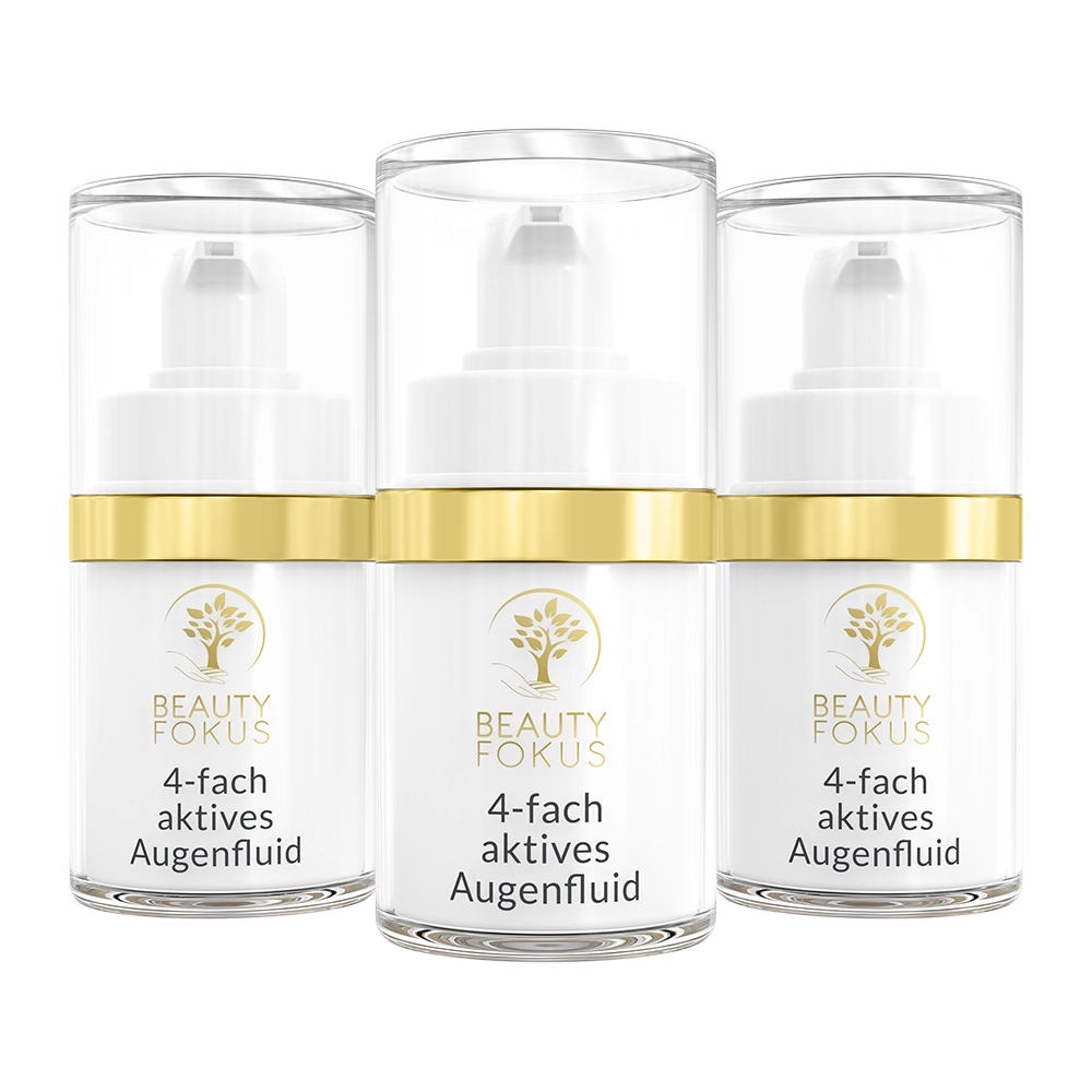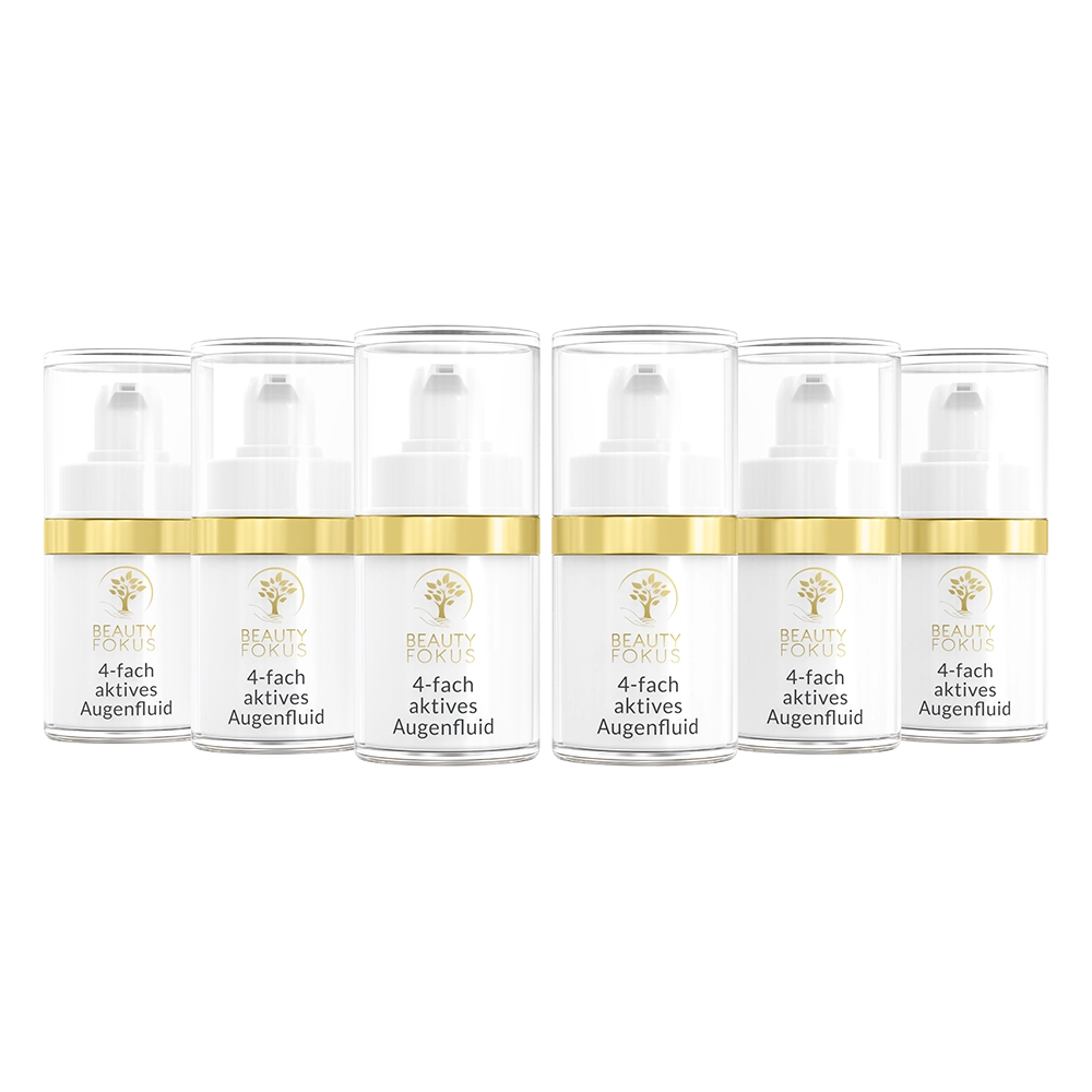 Die Augenpartie altert schneller als jeder andere Bereich des Körpers – doch das muss nicht sein! BeautyFokus 4-fach aktives Augenfluid verwandelt müde, erschlaffte Augen in einen wachen, jugendlichen Blick. Unsere einzigartige Fibroblasten-Aktivator-Formel entfacht die Collagen- und Elastinproduktion neu und die kraftvollen Pflanzenextrakte arbeiten synergetisch zusammen, um die Haut um Ihre Augen zu liften, zu glätten und Jahre jünger aussehen zu lassen.» WEITERE DETAILS Das schnell einziehende Fluid hilft bei den vier bekannten Problemzonen der Augenpartie: Krähenfüße, Schlupflider, Tränensäcke und Augenringe. Erleben Sie den Anti-Aging-Durchbruch für Ihre Augen – morgens und abends.