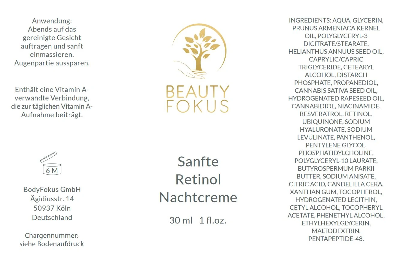 Welche Inhaltsstoffe enthält BeautyFokus Sanfte Retinol Nachtcreme?